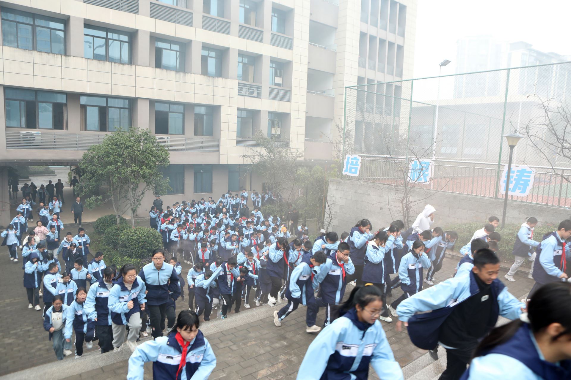 32647 次浏览 11-1011月5日,永川区凤凰湖中学开展“消防应急疏散演练,筑牢校园安全屏障”主题活动,以实战验成效、以总结促提升,为平安校园筑牢安全根基。演练中,该校模拟教学楼某层发生火情,初一、初二年级各班班主任立即组织
